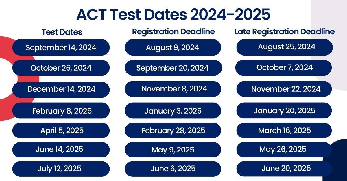 Act.org just released their National Test Dates for 2024-2025, including the regular registration de...